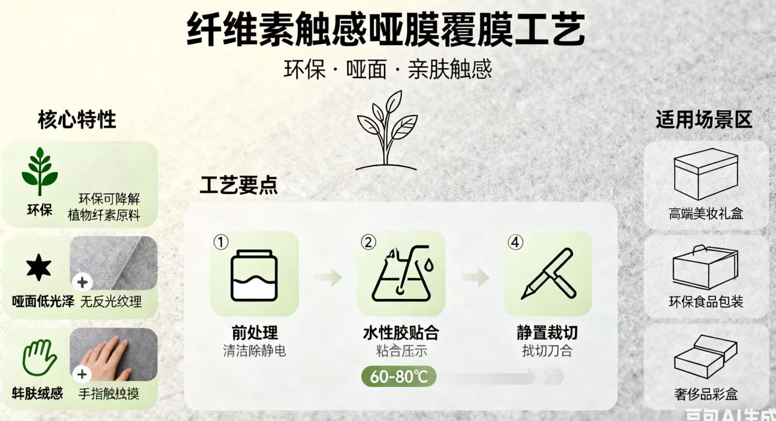 高端紅酒盒的質感天花板,藏在這層BOPP觸感膜里啞光柔霧肌理自帶高級濾鏡,摒棄普通覆膜的塑料感與反光感,指尖輕劃便是絲滑細膩的磨砂觸感,像觸摸云朵般柔軟治愈,又似細膩皮革般溫潤有質感,每一次觸碰都是沉浸式的輕奢體驗。
